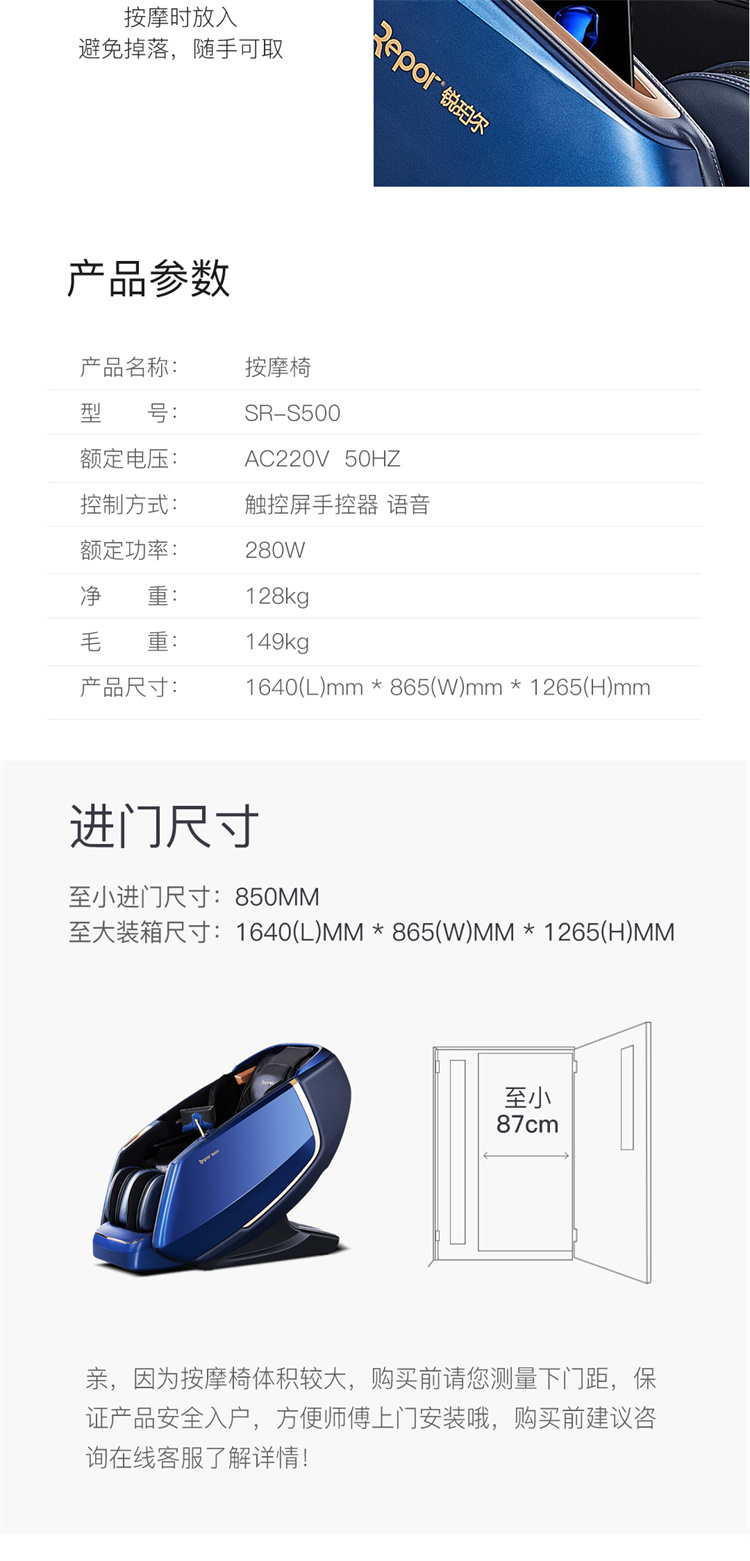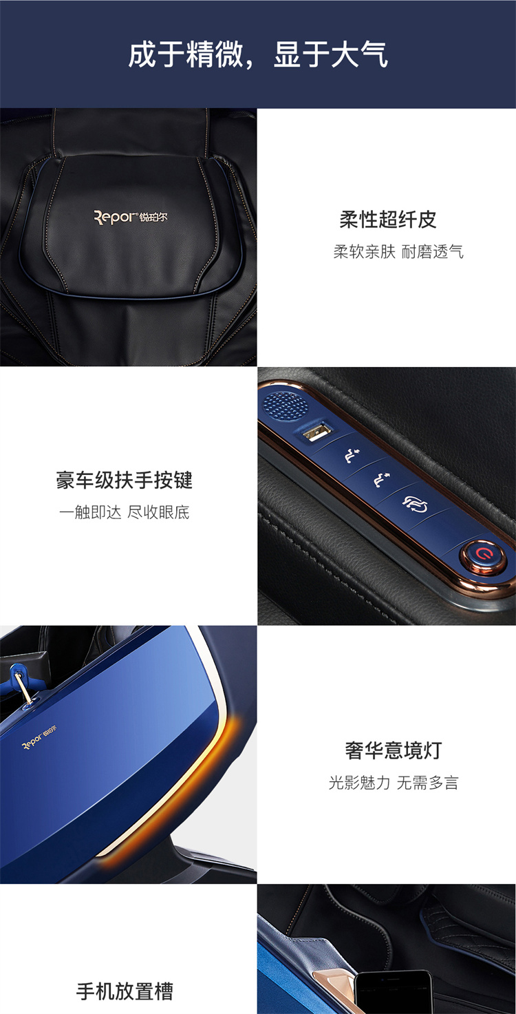 銳珀?duì)栃缕钒茨σ蜤8 Pro擁有溫感養(yǎng)生系統(tǒng),3D擺揉機(jī)械手,十大按摩手法,138cm超長SL按摩導(dǎo)軌,腿足一體按摩等功能,并且有無線充的一款新品按摩椅,價(jià)格不貴,重在享受。