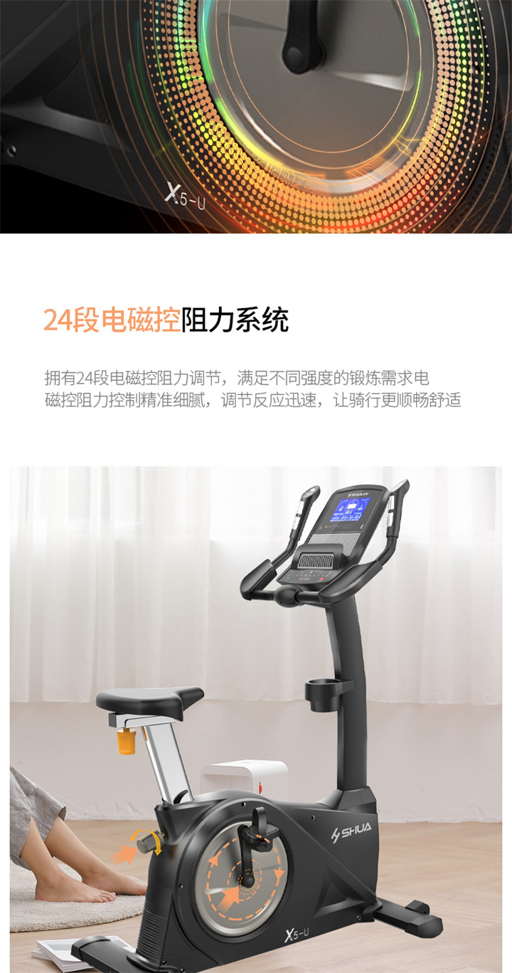 舒華臥式商用健身車SH-B9100U(V10)采用自發(fā)電,40段電磁控阻力系統(tǒng),9.3kg飛輪重量。