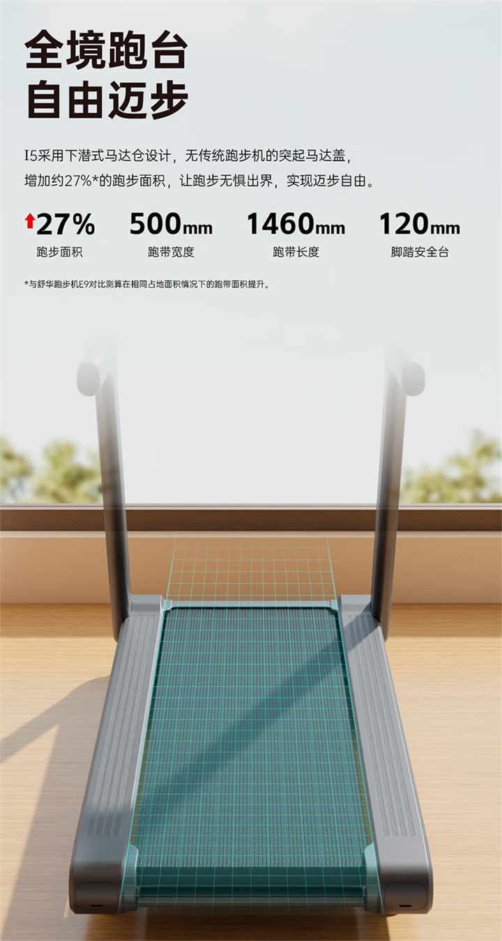 舒華跑步機(jī)SH-T5500采用T18mm的跑板,T1.6 鉆石紋的跑帶,運(yùn)用6位硅膠減震,對(duì)您跑步中的膝蓋進(jìn)行全方位的呵護(hù),選用手握心率測(cè)試,跑步面積達(dá)480×1350mm,可承受126kg的使用者使用。